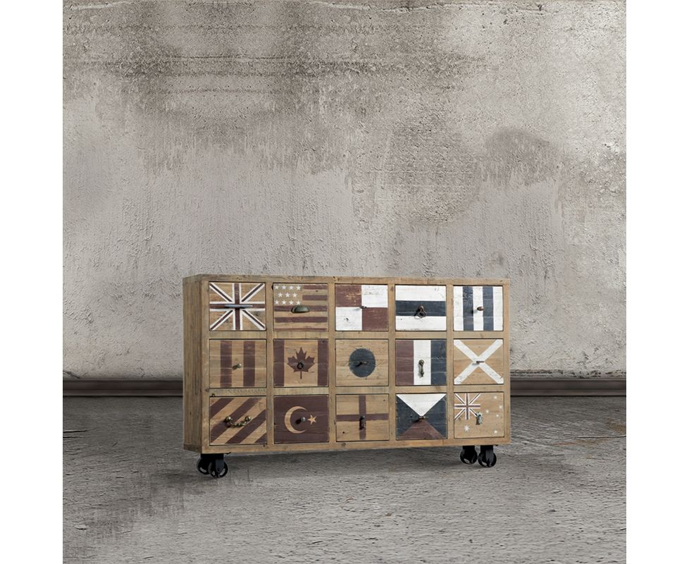 Буфет из натурального дерева. Пятнадцать выдвижных вместительных ящиков. Ножки с колесиками.