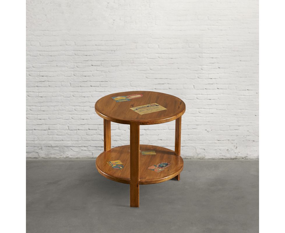 Круглый столик из натуральной древесины. Три устойчивые ножки. Внизу открытая полка.