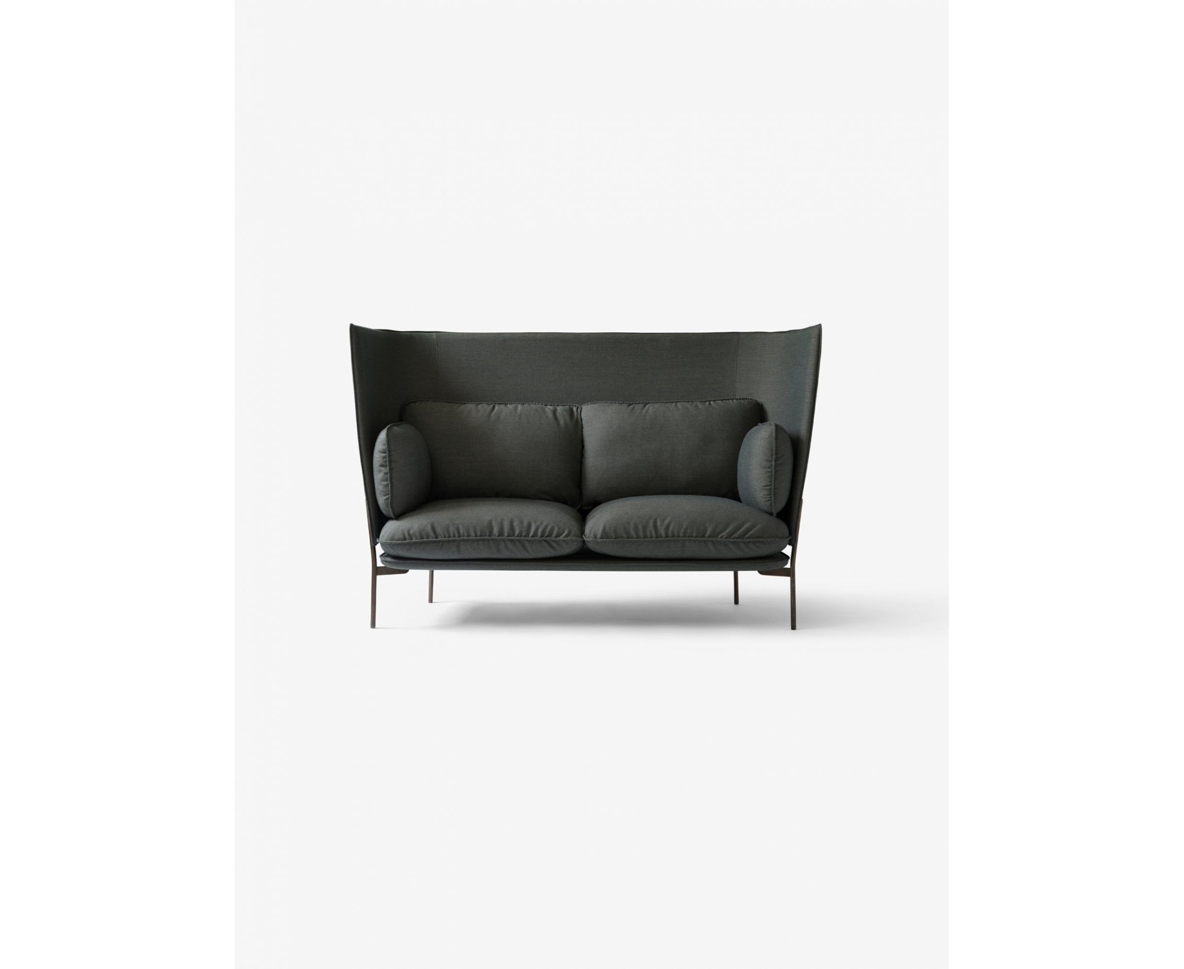 Узкие стальные ножки удерживают основание «на плаву», со специальным покрытием черного, хромированного или бронзового цвета. Подушки вдоль спинки закреплены на месте с помощью изогнутой оболочки, которая простирается довольно высоко над вашей спиной, изготовленной из обернутой пеной фанеры, покрытой тем же текстилем, чтобы соответствовать подушкам.