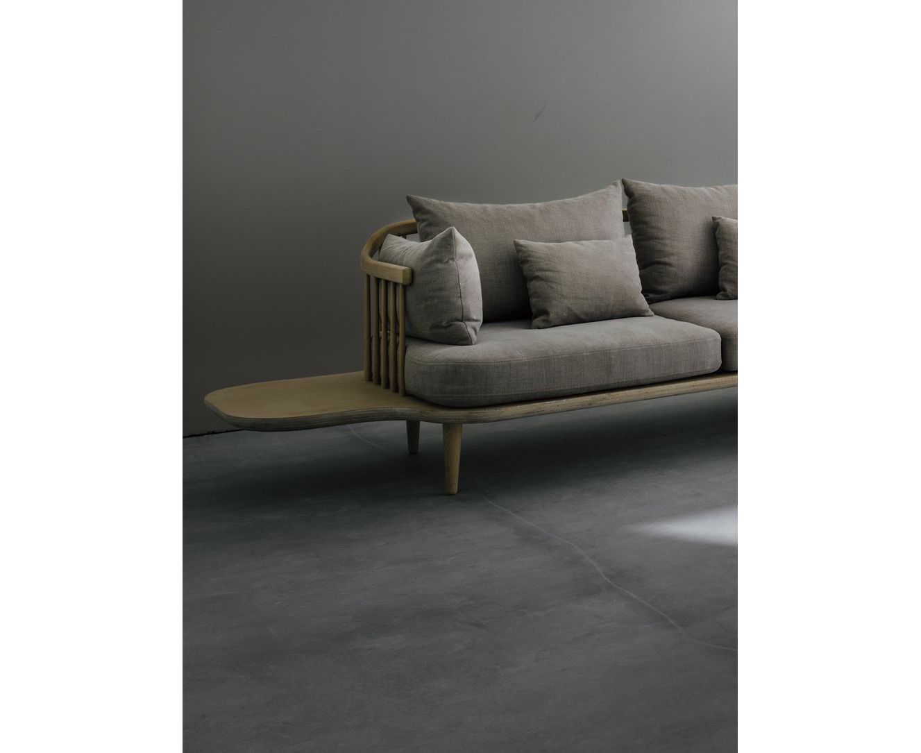 Fly - это коллекция, которая позволяет пользователю сидеть, лежать, отдыхать и расслабляться. В отличие от многих диванов и кресел в истории скандинавского дизайна, Fly не навязывает какую-либо особую позу. Само сиденье оптимизировано для комфорта благодаря свободным подушкам для спины, которые можно расположить в соответствии с собственными потребностями пользователя. Но Fly придерживается традиций в других отношениях; каркас дивана и кресла с решетчатой спинкой сделан из массива дуба, обработанного белым пигментированным маслом или копченым маслом. Это тип материала и обработки, которые стареют с истинной грацией, только со временем становясь все более красивыми.