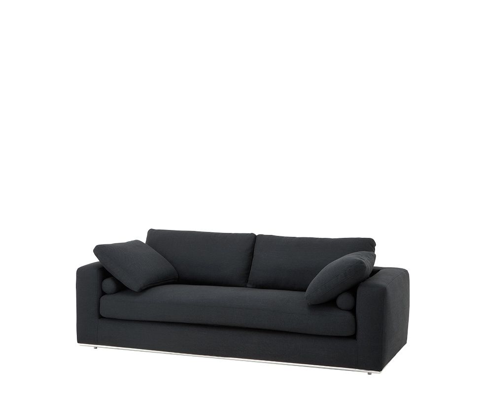 Мягкий уютный диван в современном классическом стиле. Низкий широкий и мягкий каркас образует основание, на котором разместились подушки. Подушка сиденья не закреплена на каркасе. Коротенькие тонкие металлические ножки.