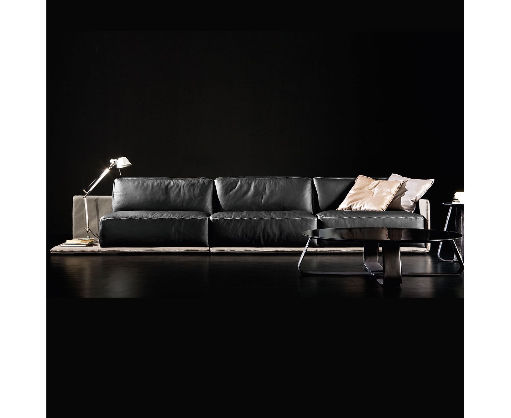 Кожаный диван Border выполнен в современном стиле, в духе минимализма, без лишних деталей. Основание, находящееся почти вровень с полом, украшено специальным швом. Тем же швом отделаны подушки сиденья и спинки. Диван, состоящий из двух основных блоков (основание и мягкие элементы), позволяет выгодно использовать эффект двухцветности.
