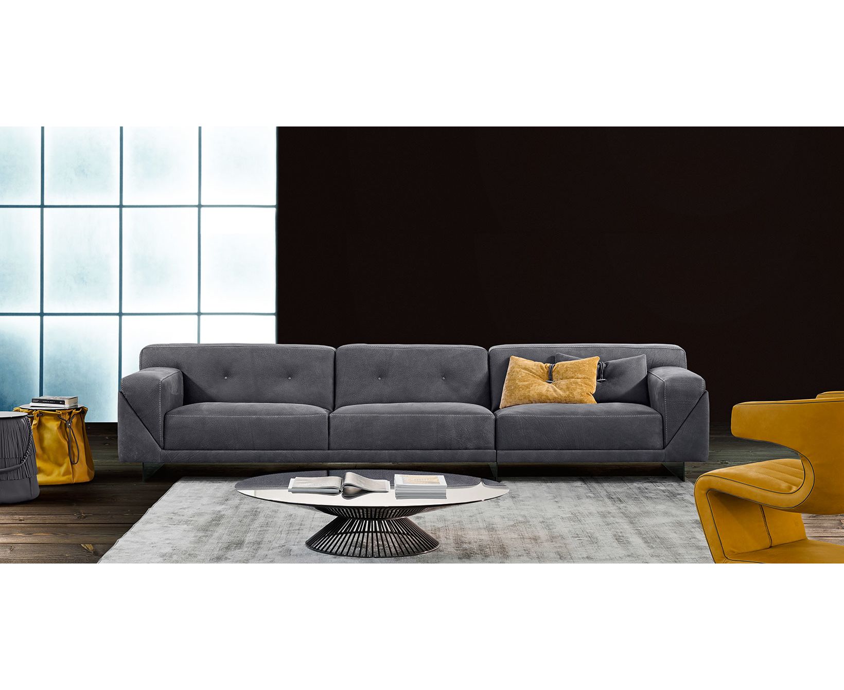 Grant — это кожаный диван, заметный благодаря большим мягким подушкам. Их силуэт сливается с геометрическими линиями обрамляющего их корпуса, создавая неотразимый эффект. Простые формы подчеркивают пропорции изделия, выгодно представляя его дизайн и создавая ощущение опрятности.