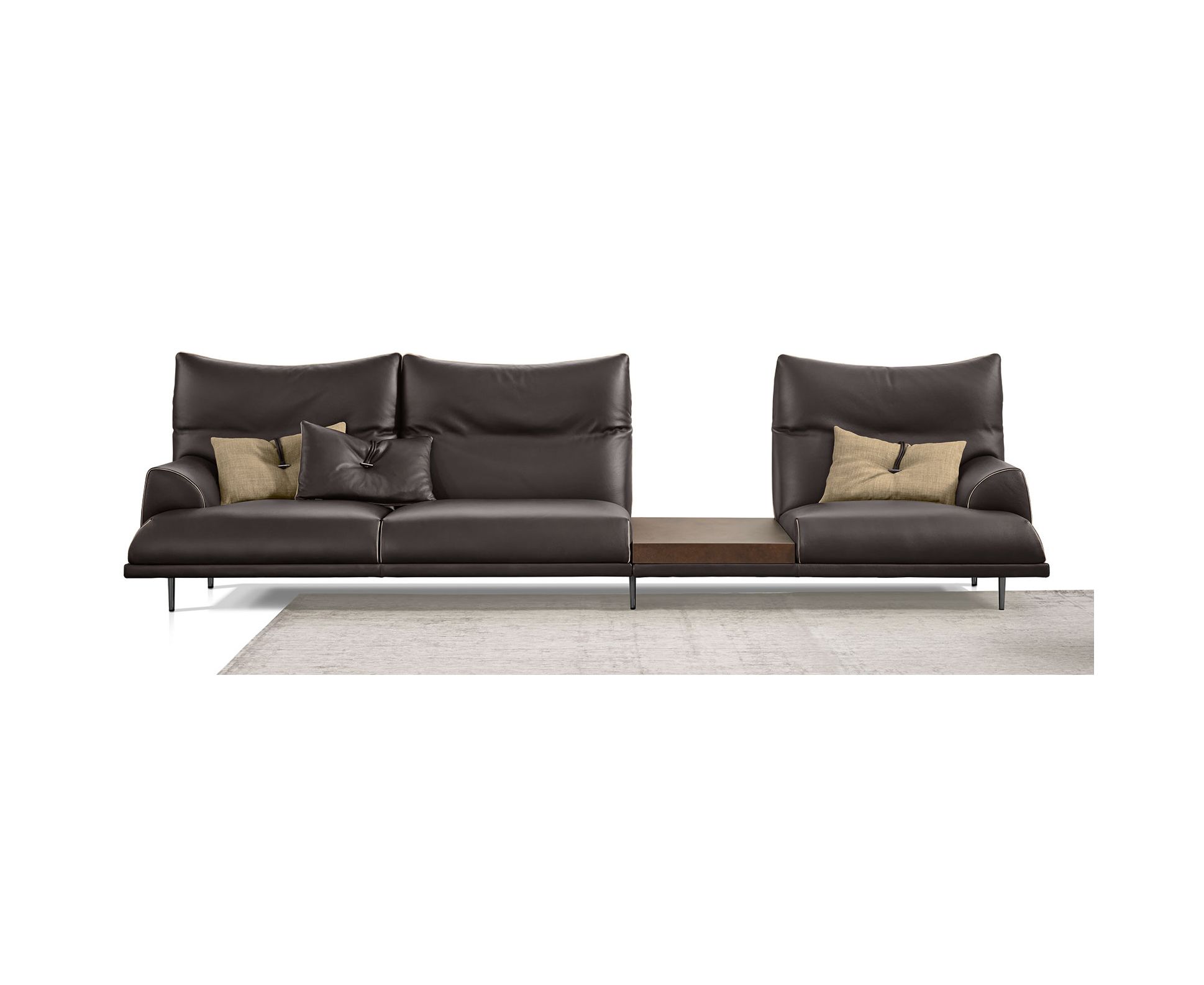 Этот модульный диван спроектирован для обеспечения комфорта, который достигается благодаря высокой спинке, а также округлости его форм и силуэта.