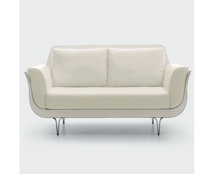 Чаша, раковина, корпус, открытая и пустотелая форма, полностью обшита кожей. Перевернутое и вытянутое седло, опирающееся на узкие металлические кронштейны и заполненное подушками, которые копируют его форму и в то же время смягчают его. Ссылка к неоклассическому силуэту, холодному и совершенному, в то же время к наслаждению от сексуальных форм женских фигур на нем, всегда лежащих на спине на картинах или в академической презентации – все это завершает геометрию и цитирование сторонников классицизма. В этом диване смешались традиции шорных изделий и обойного ремесла в виде нового прочтения пространства и неоклассической обстановки, а также их самых общих и распространенных образов.