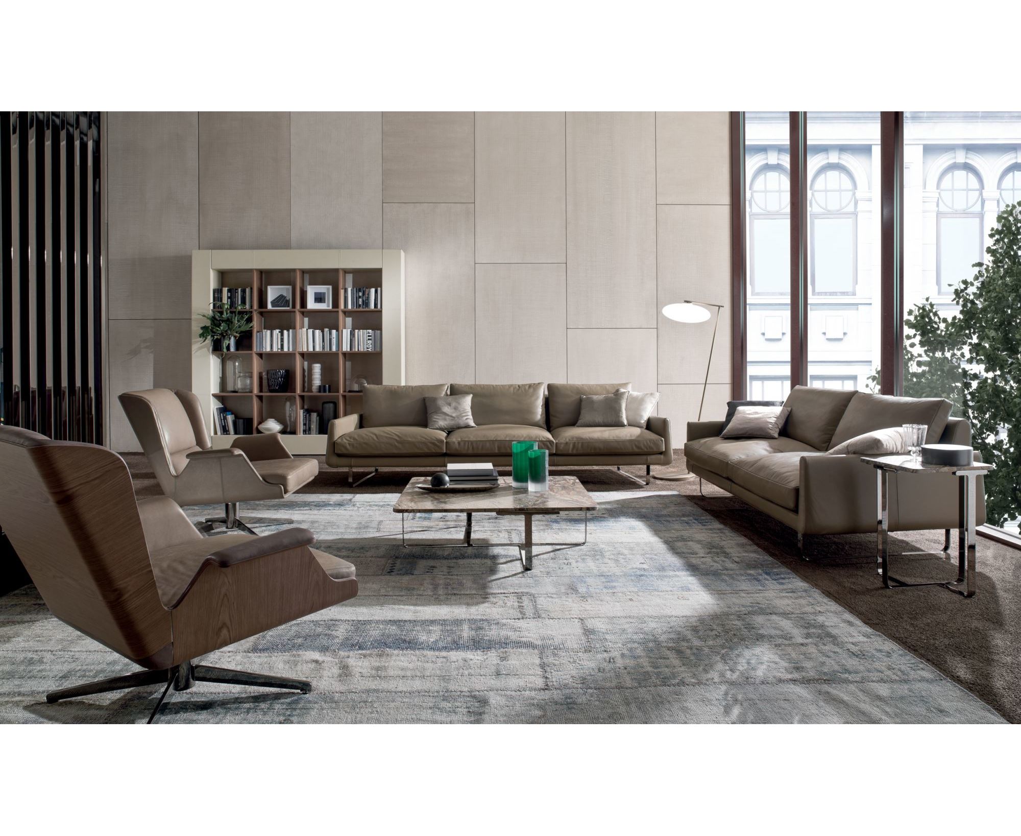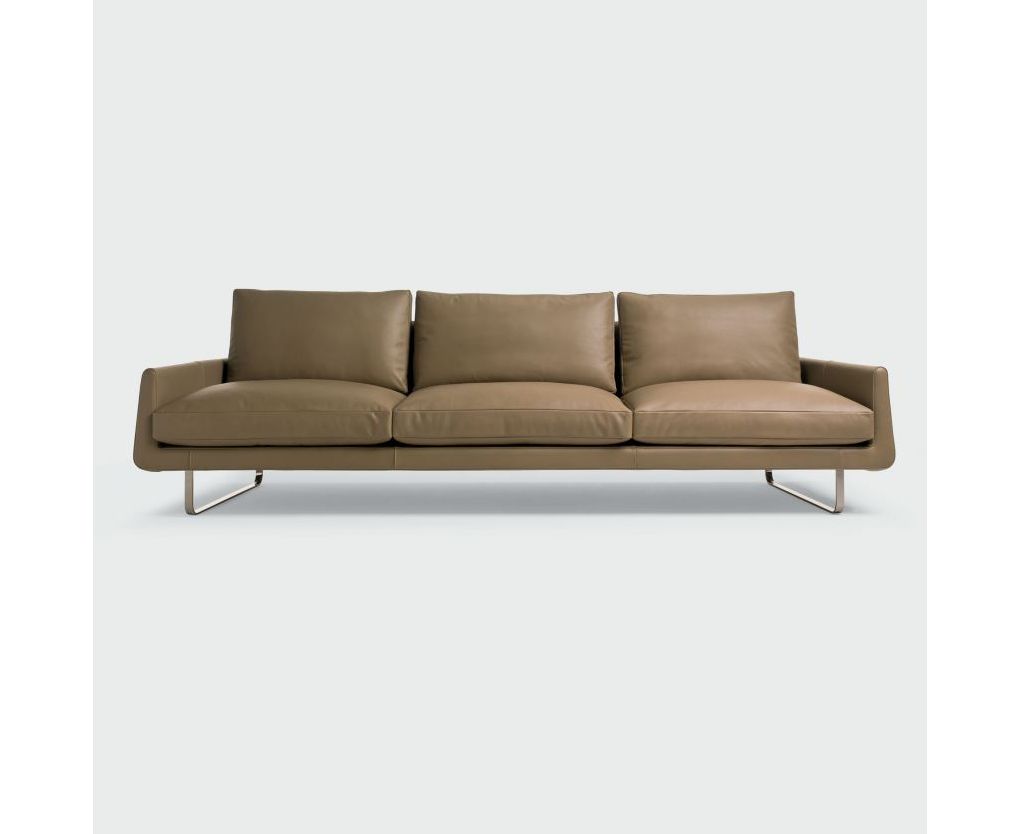 Подлокотники выполнены из стального круглого трубчатого профиля и покрыты вспененным полиуретаном и двойным бархатом. Съемные подушки на сиденьях разделены на три горизонтальных зоны: центральная часть выполнена из вспененного полиуретана (с плотностью 30 кг/куб.м), между тем как подушки из двух крайних частей набиты пухом. В то же время съемные подушки со спинки выполнены полностью из пуха. Опоры изготовлены из плоской изогнутой стали с хромированной черной отделкой.