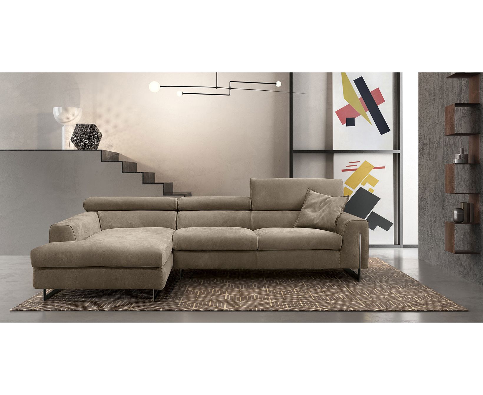 Элегантный кожаный диван в современном стиле с металлической основой подлокотника и подголовником, который регулируется в соответствии с сиденьем.