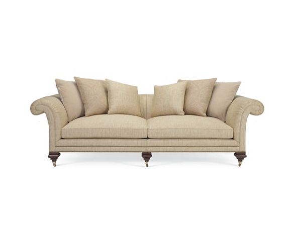 Этот роскошный диван может похвастаться обильно свернутыми руками, латунной отделкой гвоздиками и ступенчатыми квадратными ножками George V на колесиках.