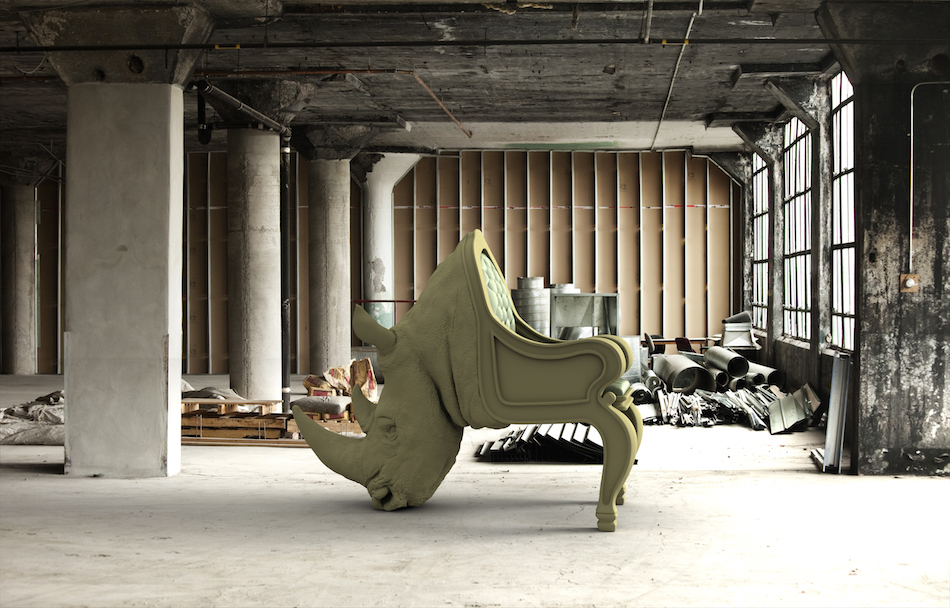Свое второе творение дизайнер создал в далеком 2011 году, изготовив стул Rhino Chair. С тех пор мир был поражен его невероятным сходством с находящимся под угрозой исчезновения животным. Благодаря удивительно удобному на вид трону, который сливается с верхней половиной тела носорога, это был второй скульптурный дизайн, добавленный в коллекцию стульев для животных Riera - первый - столь же величественный стул The Octopus Chair. С тех пор лимитированная серия выросла в смешанное стадо стульев в форме животных, включая кресло-слон, шезлонг из моржа и даже диван-жабу.