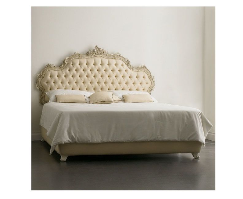 Двуспальная кровать в современном классическом стиле. Модель прекрасно впишется в спальню, став ее центром. Высокое мягкое изголовье украшено резными элементами и стежкой капитоне. Резные фигурные ножки.