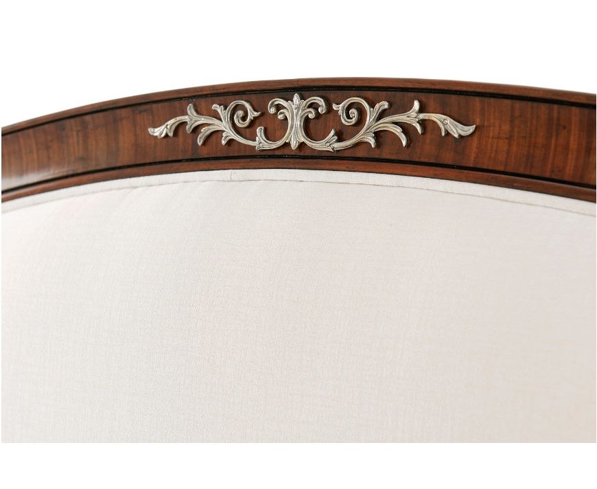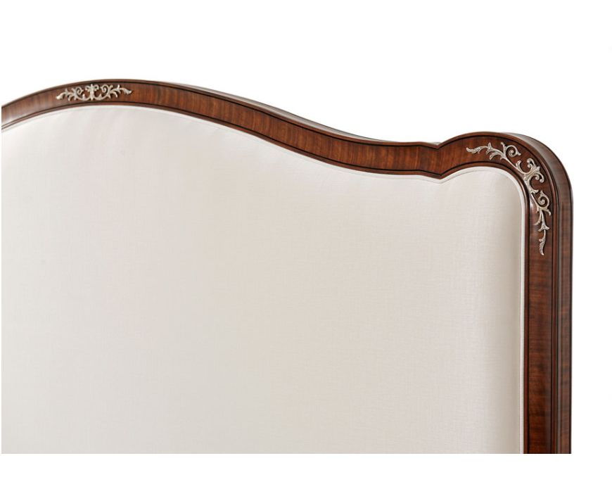 Отделка Оксфорд красного дерева у кровати Eulalie US King Bed с каркасной обивкой, извилистым арочным изголовьем с висячими виноградными лозами, прикрепленными к гребню и углам, на резных ножках кабриоле.