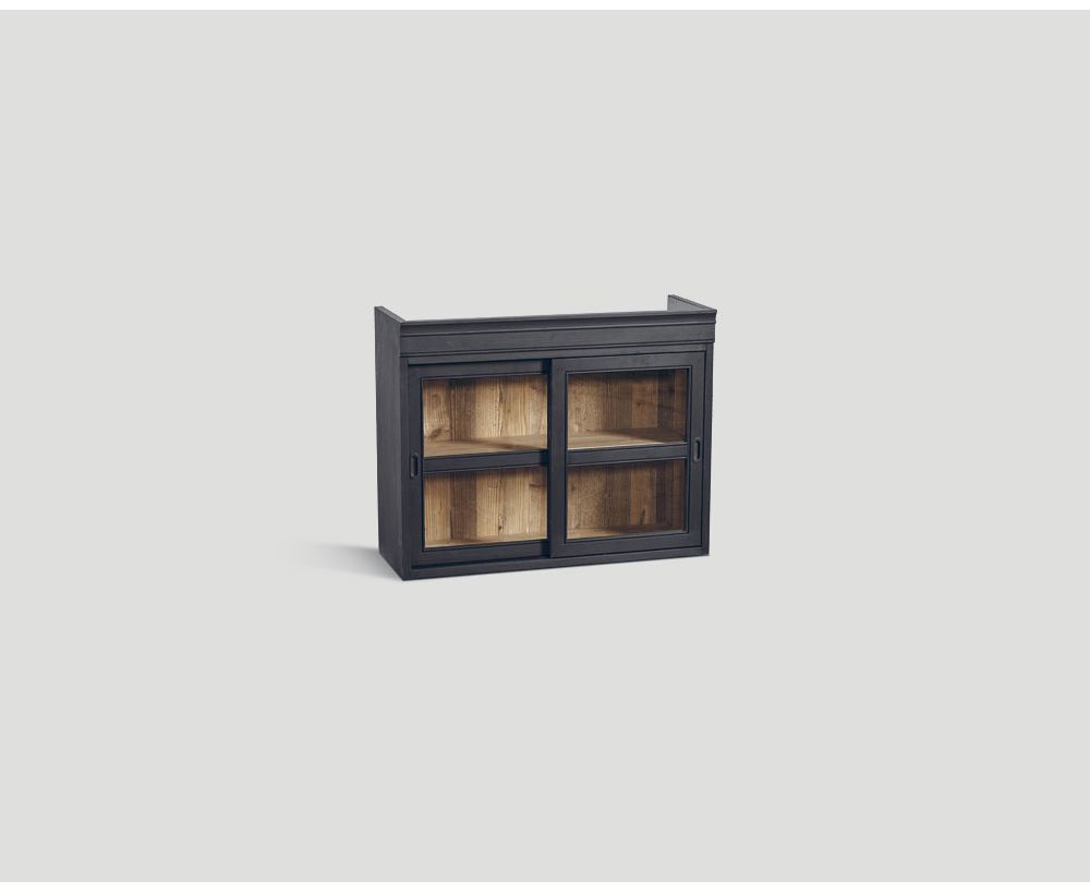 Elemento componibile in legno vecchio riciclato, interno finitura Naturale ed esterno laccato e cerato a pennello color Lavagna. Elemento 2 porte scorrevoli (sopralzo)