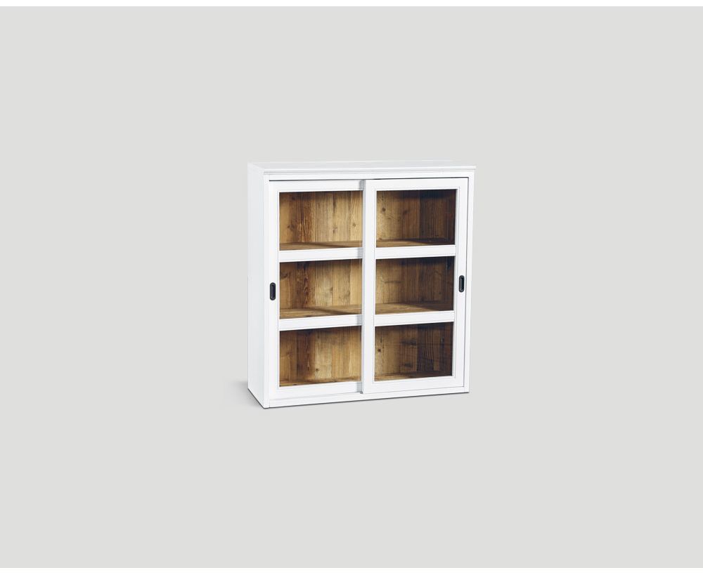 Elemento componibile in legno vecchio riciclato, interno finitura Naturale ed esterno laccato e cerato a pennello color Bianco. Elemento 2 porte scorrevoli (intermedio)