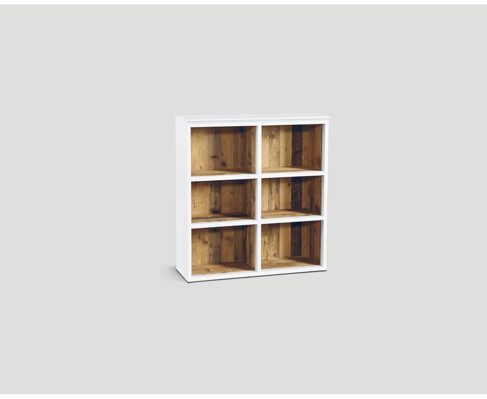 Elemento componibile in legno vecchio riciclato, interno finitura Naturale ed esterno laccato e cerato a pennello color Bianco.Elemento aperto (intermedio)
