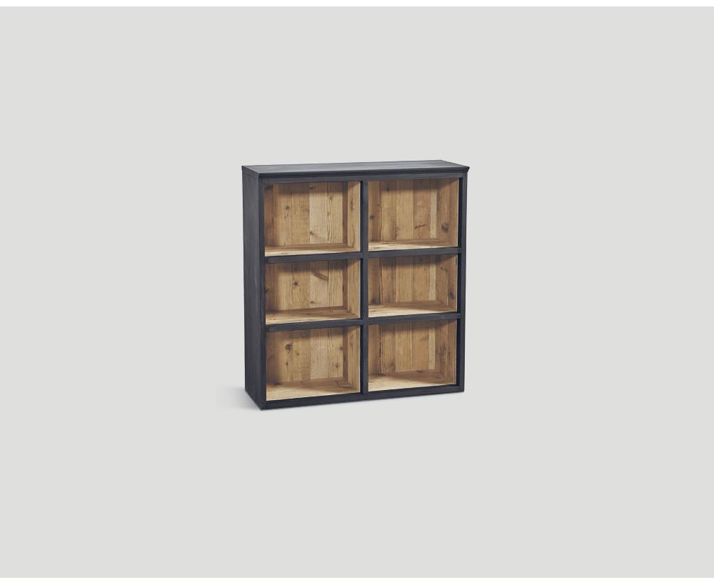 legno vecchio riciclato, interno finitura Naturale ed esterno laccato e cerato a pennello color Lavagna. Elemento aperto (intermedio)