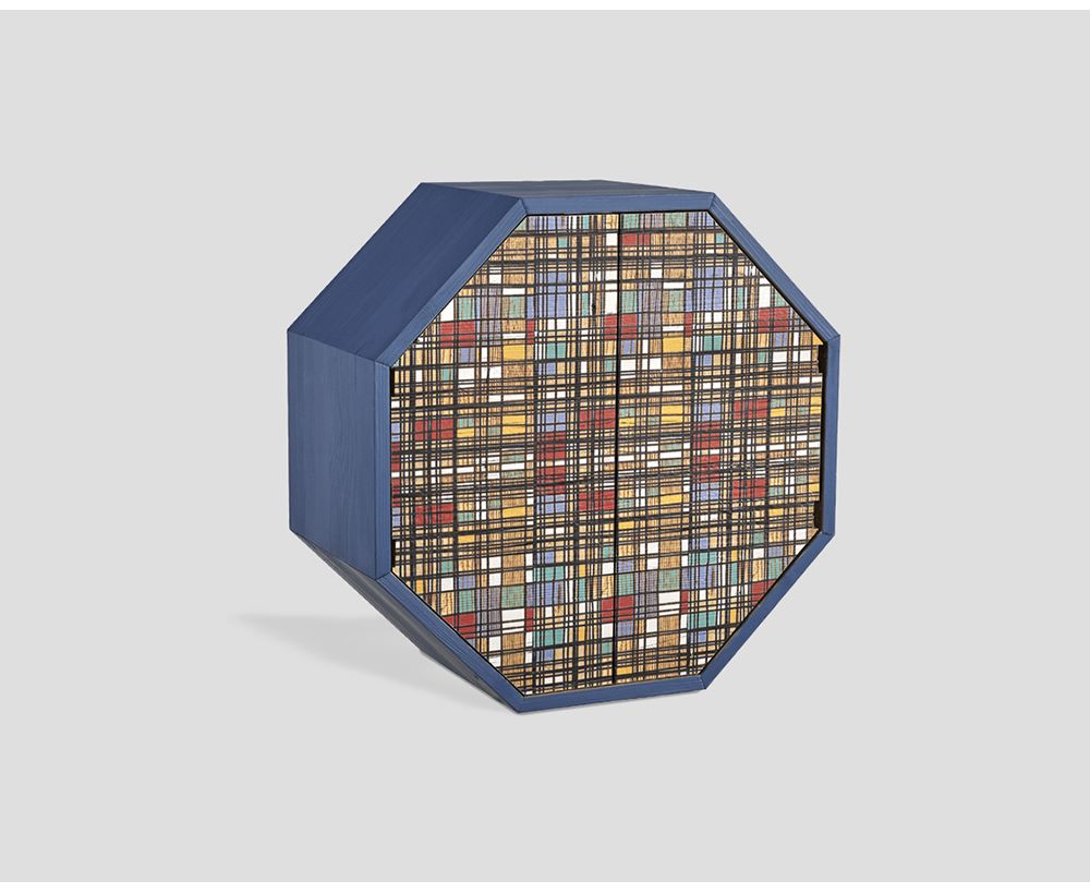 Elemento componibile ottagonale 2 ante stampate in legno vecchio riciclato, interni e ripiano in finitura naturale, esterno laccato e cerato a pennello disponibile nei seguenti 7 colori: Blu Avion, Verde Smeraldo, Lavagna, Bianco, Giallo, Rosso, Verde Bosco e old pine.