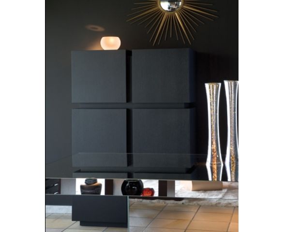 Шкаф состоит из отдельных фанерных кубов покрытых шпоном размером 45х45х45 см, соединенных между собой 5-ти сантиметровым каркасом. Регулируемая стеклянная полка для каждого отсека.