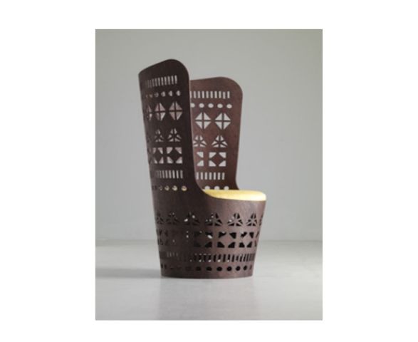 Оригинальный стул выполненный из листа дерева, украшенного фигурной резьбой вручную. Мягкие элементы на сидении и спинке выполнены из текстиля.