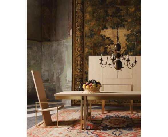 Стол квадратный или прямоугольный. Выполнен полностью из древесины или из древесины, украшенной латунью, полированной или необработанной.