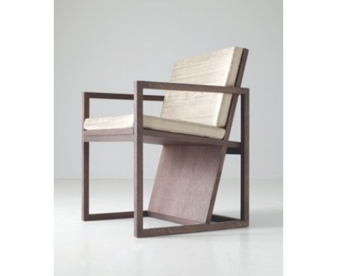 Стул с различной высотой спинки. Каркас выполнен из полированной стали или латуни. Сидение и спинка изготовлены из дуба, покрытого лаком. По желанию, данная модель может быть дополнена подушками.