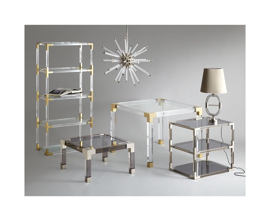 Коллекция Jacques - это идеальное сочетание простоты и гламура, современного и традиционного. Выбирайте из роскошного прозрачного акрила с матовой латунной или полированной никелевой отделкой или угрюмого акрила с полированной никелевой отделкой. Потрясающе для книг или для отображения ваших любимых предметов. Большое присутствие, невесомый прозрачный.