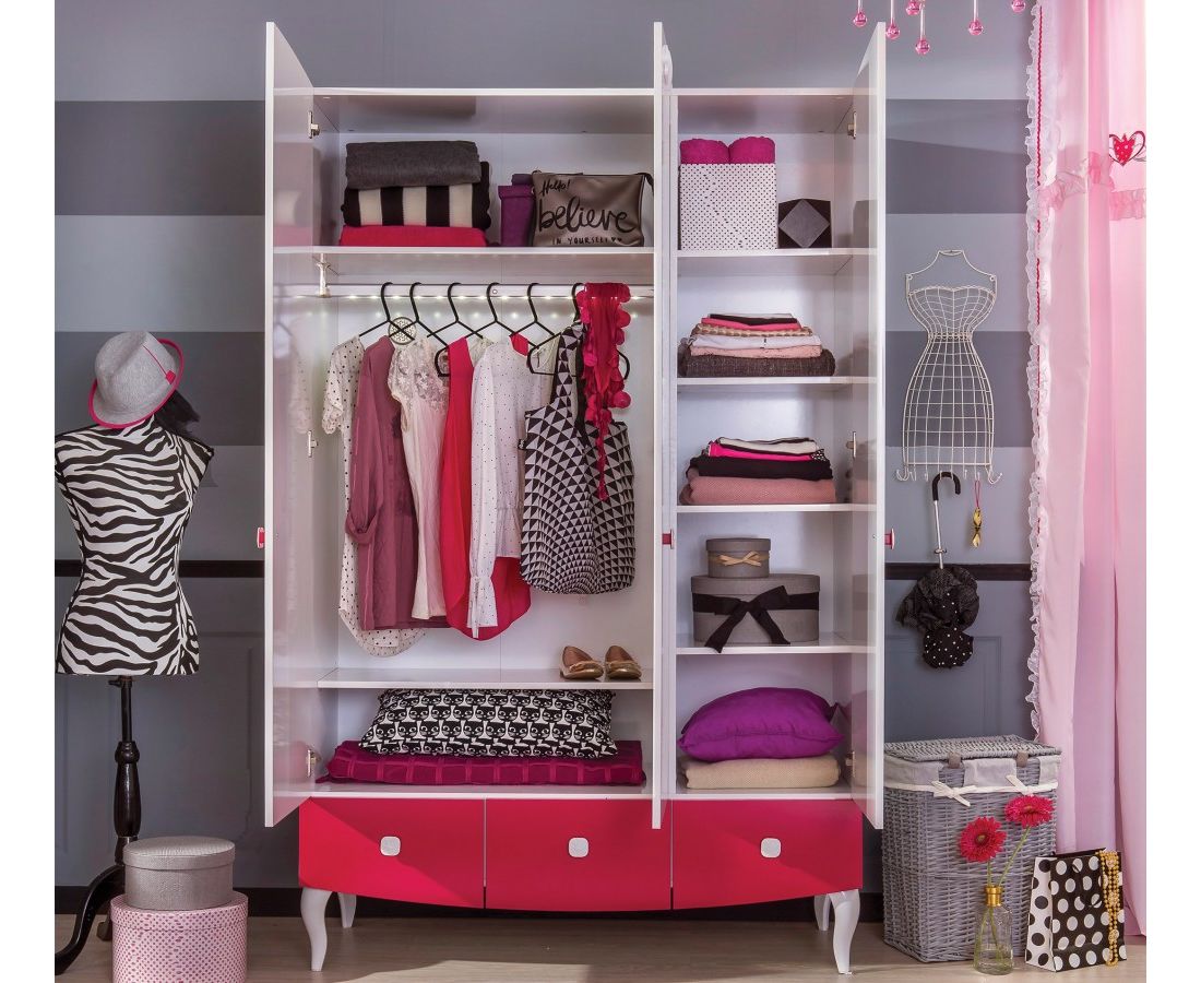 3 ящика и большое количество внутренних полок. Крышки с упорами. Вешалка с подсветкой
