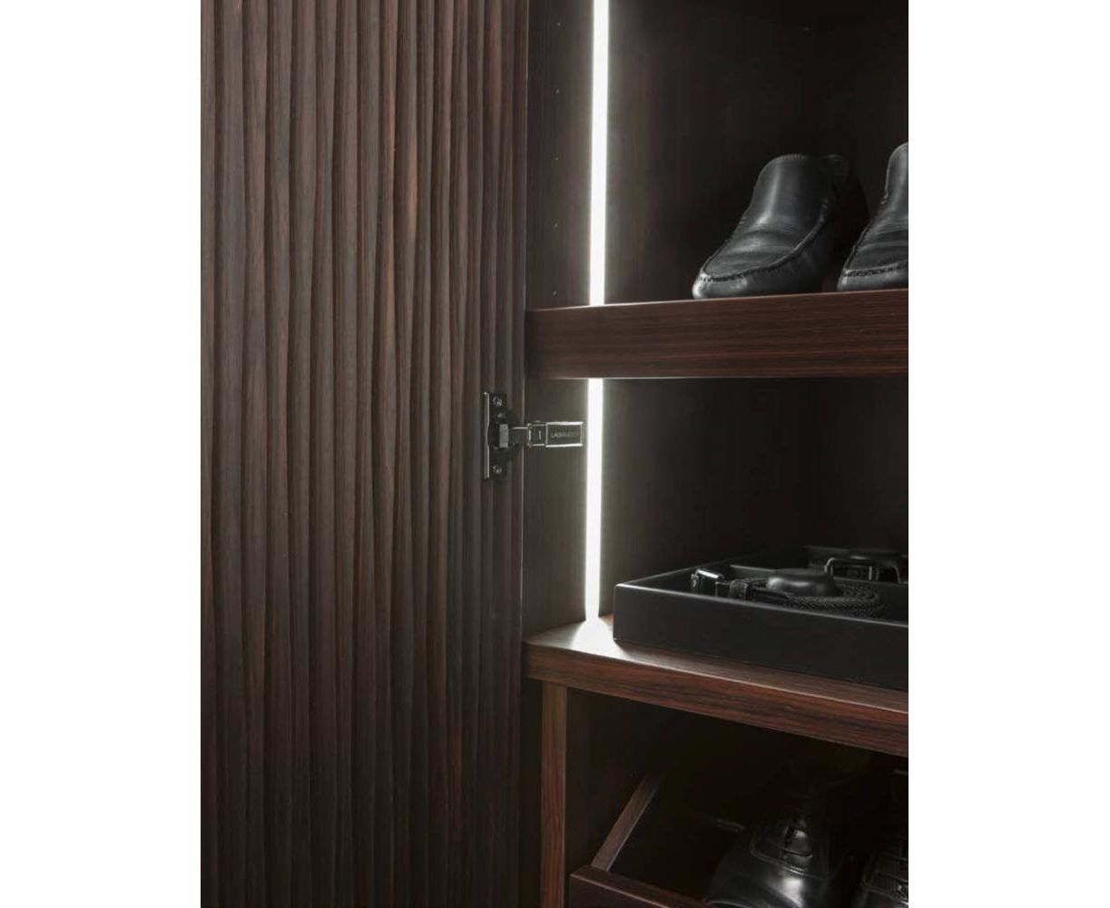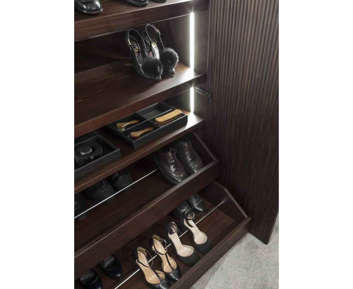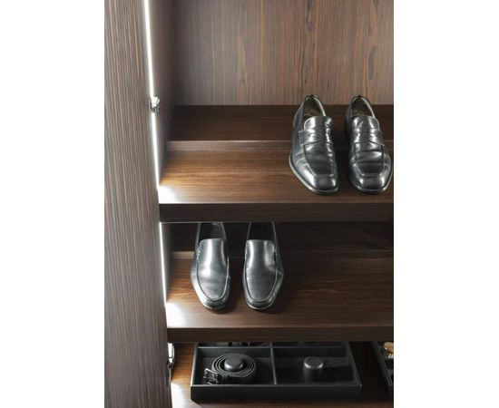 Полки для обуви изготовлены из того же дерева, что и все остальные компоненты конструкции шкафа, они могут быть персонализированы всеми представленными в каталоге породами дерева или различными видами специальной отделки.