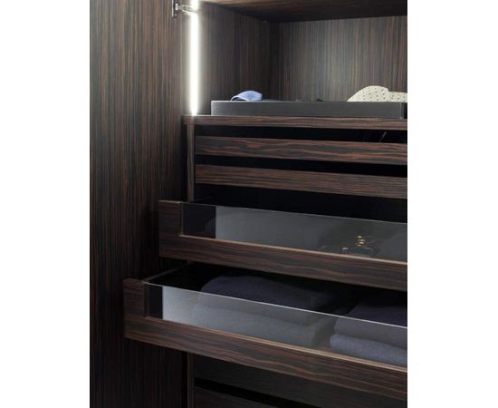 Доступен широкий ассортимент фурнитуры для персонализации внутренней части шкафов: пантографы, светодиодное освещение, системы ароматизации и очистки воздуха озоном.