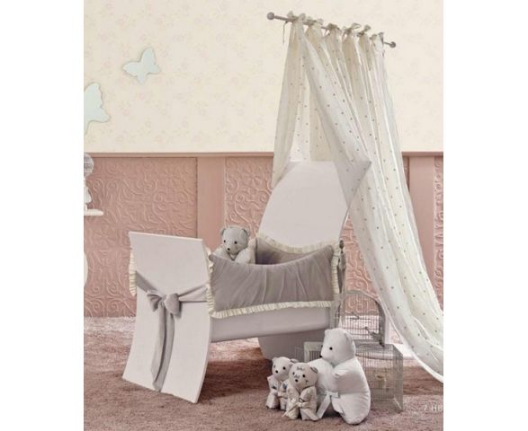 Колыбель Halley ANDY. Элегантная кроватка для новорожденного. Высокое изогнутое изголовье и невысокое изножье. Колыбель может быть оформлена в нескольких вариантах: без резных элементов, с резным узорчатым изголовьем, с резным изголовьем и изножьем. В комплекте к модели предлагаются 1 гипоаллергенный матрас на 50х85хh13 см, бампер (банты спереди и сзади, съемный чехол). Кроватка изготовлена из ламинированного MDF и тополя. Доступны разные цветовые решения.