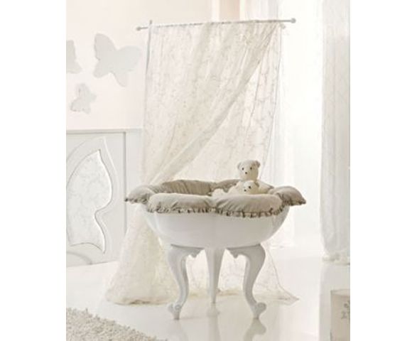Колыбель Halley SUNNY. Элегантная кроватка для новорожденного. Модель выполнена в необычной форме чаши и стоит на трех резных фигурных ножках из полиуретановой пены с металлическим стрежнем. Кроватка изготовлена из ламинированного бука. В комплекте к колыбельке идет 1 гипоаллергенный матрас Ø 86 см и высотой 10 см. В дополнение предлагается бампер с бахромой или валанами. Доступны несколько вариантов цветов.