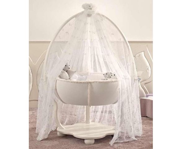 Колыбель Halley WINNY. Элегантная кроватка для новорожденного. Люлька выполнена в форме фигурной чаши и повешена на фигурных опорах. Структура изготовлена из массива бука, колыбель из ламинированного бука, основа из МДФ. Ножки на колесиках. Люлька может быть оформлена бахромой, присборенными воланами. Так же к кроватке предлагается балдахин: короткий или длинный. Колыбелька выполнена в пастельных тонах.