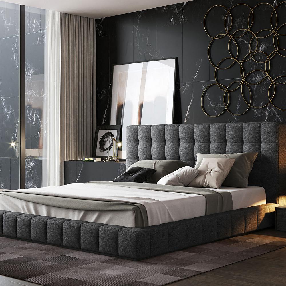 Некоторые современные рамы полностью облегают все вокруг и придают роскошный, мягкий современный вид. Большая часть мягкой мебели поможет поглотить звук для более спокойного ночного сна, что может быть особенно полезно в спальнях без коврового покрытия от стены до стены.