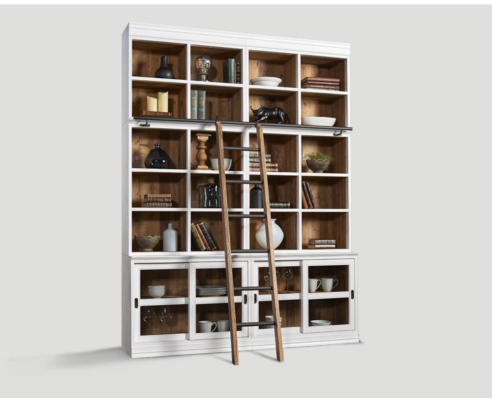 Kit scaletta con asta componibile, in metallo finitura Ferro Brunito e legno vecchio riciclato finitura Naturale. Kit 2 vani