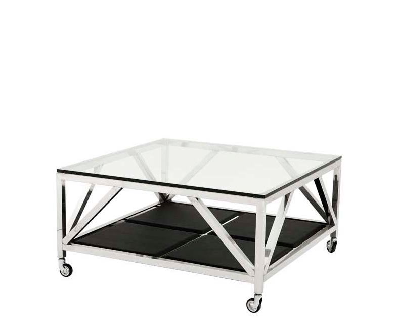 Кофейный столик Prado имеет классический дизайн, переделанный на под современность. Модель отлично подойдет для современного и интерьера в стиле хай-тек. Столешница изготовлена из прозрачного стекла очень прочного и выносливого. Столик имеет колесики, что делает его мобильным и функциональным. Полка под столешницей с покрытием из черной кожи.
