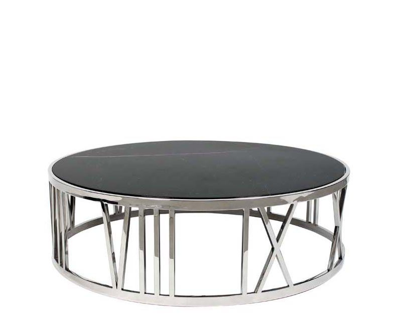 Приставной столик простой формы. Спокойный строгий дизайн позволяет модели вписаться в любой интерьер. Тонкие ножки из металла. Столешница выполнена из черного мрамора.