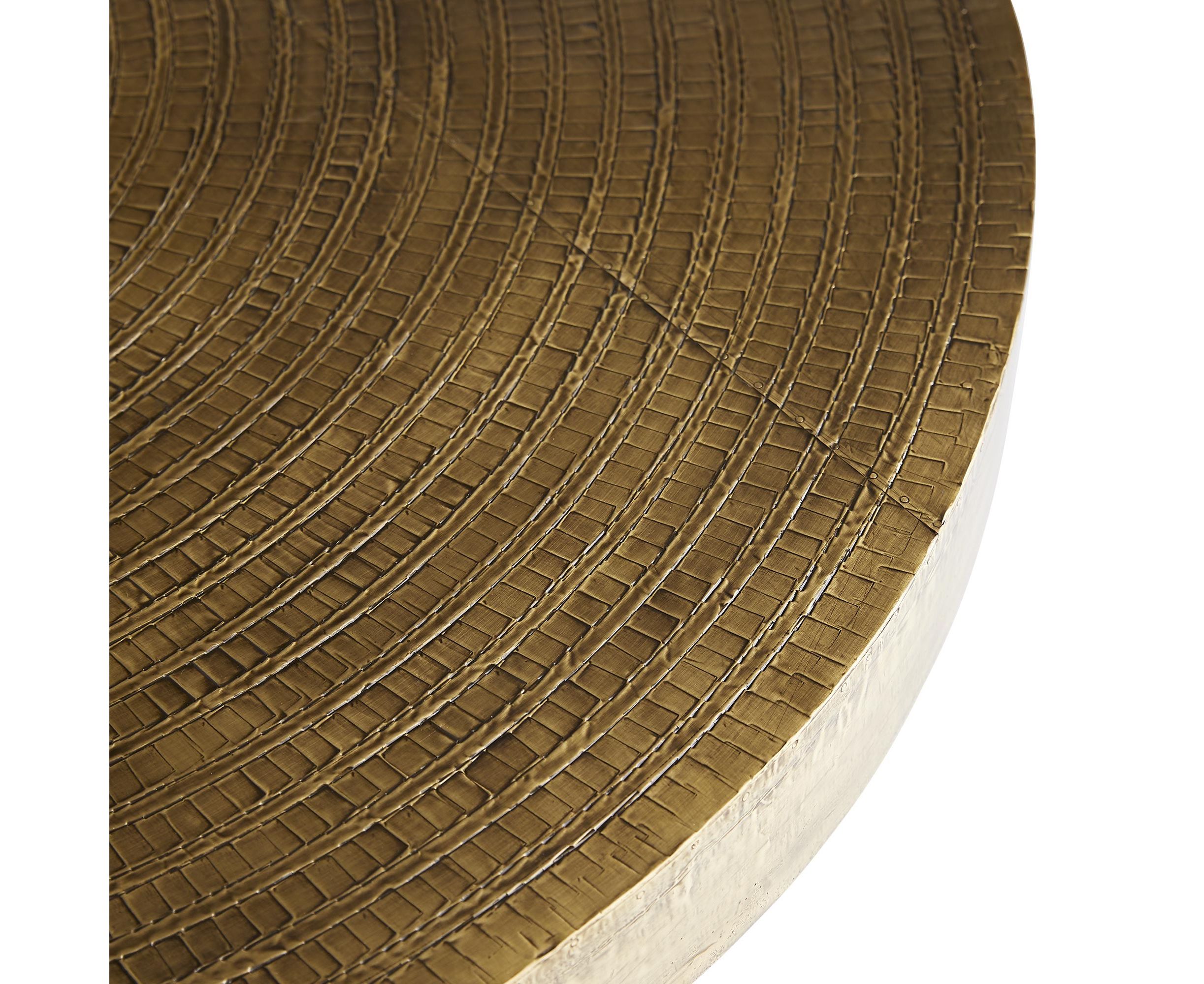 Техника Artisan берет свое начало в привлекательном дизайне аналога Daryl Side Table. Верх из массива дерева был вырезан с ритмичным рисунком, а затем покрыт античным латунным листом. Тонкая и короткая коническая алюминиевая основа отделана античной бронзой и дополняет верх с поразительным контрастом цвета и материалов. Отделка может отличаться.