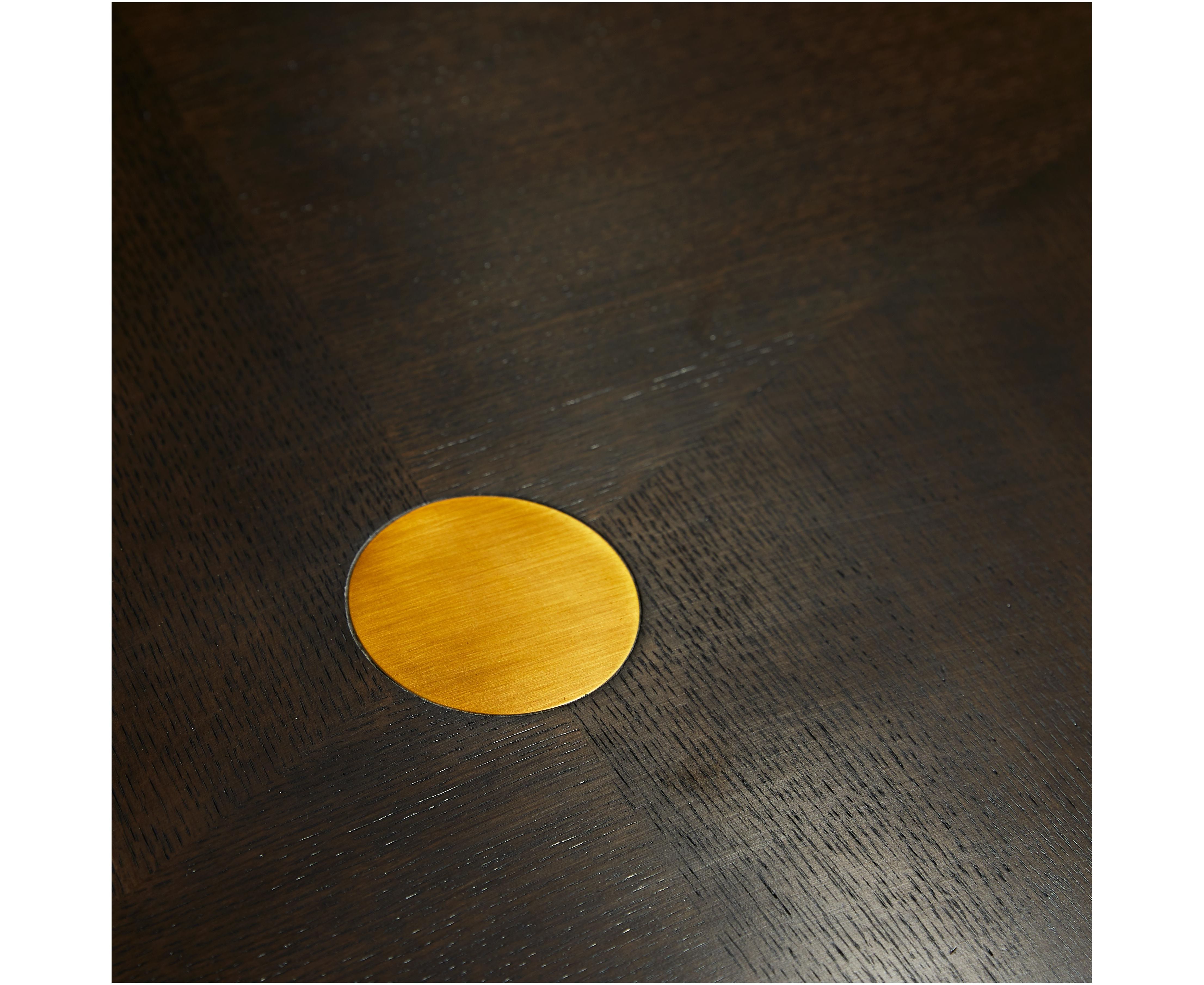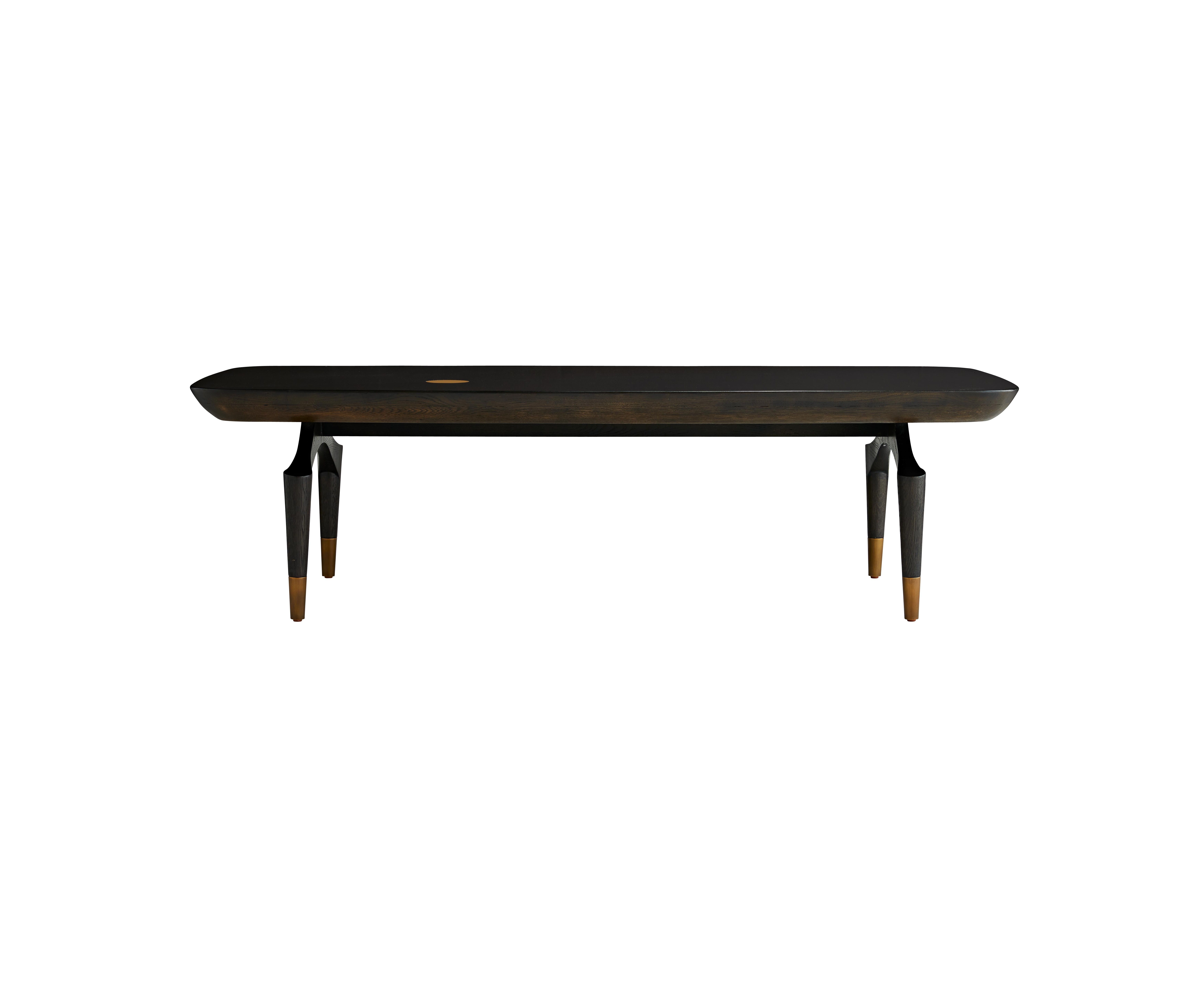 Изысканные и деревенские элементы демонстрируются через смесь материалов, которые составляют этот величественный коктейльный стол. Рама из массива дуба с янтарной отделкой подчеркнута простой антикварной латунной вставкой, которая придает изысканный элемент ее простоватой форме. Резко наклоненные ножки придают драматическое сопоставление растягивающейся прямоугольной столешнице. Этот правильно сформированный предмет обеспечивает изысканную эстетику гостиной или столовой.