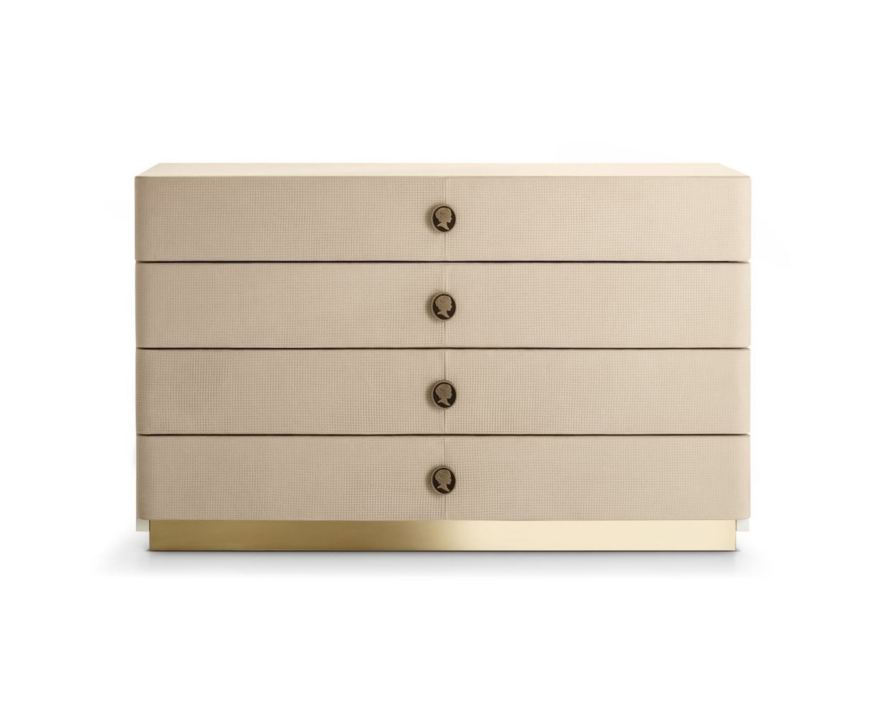 Jasmine - это коллекция изысканных единиц хранения, прекрасно интерпретирующих новые тенденции современной жизни. Ящики обтянуты кожей с принтом с эффектом плетения, придающим элегантность и стиль, характерный для превосходной итальянской кожаной одежды, всей коллекции.