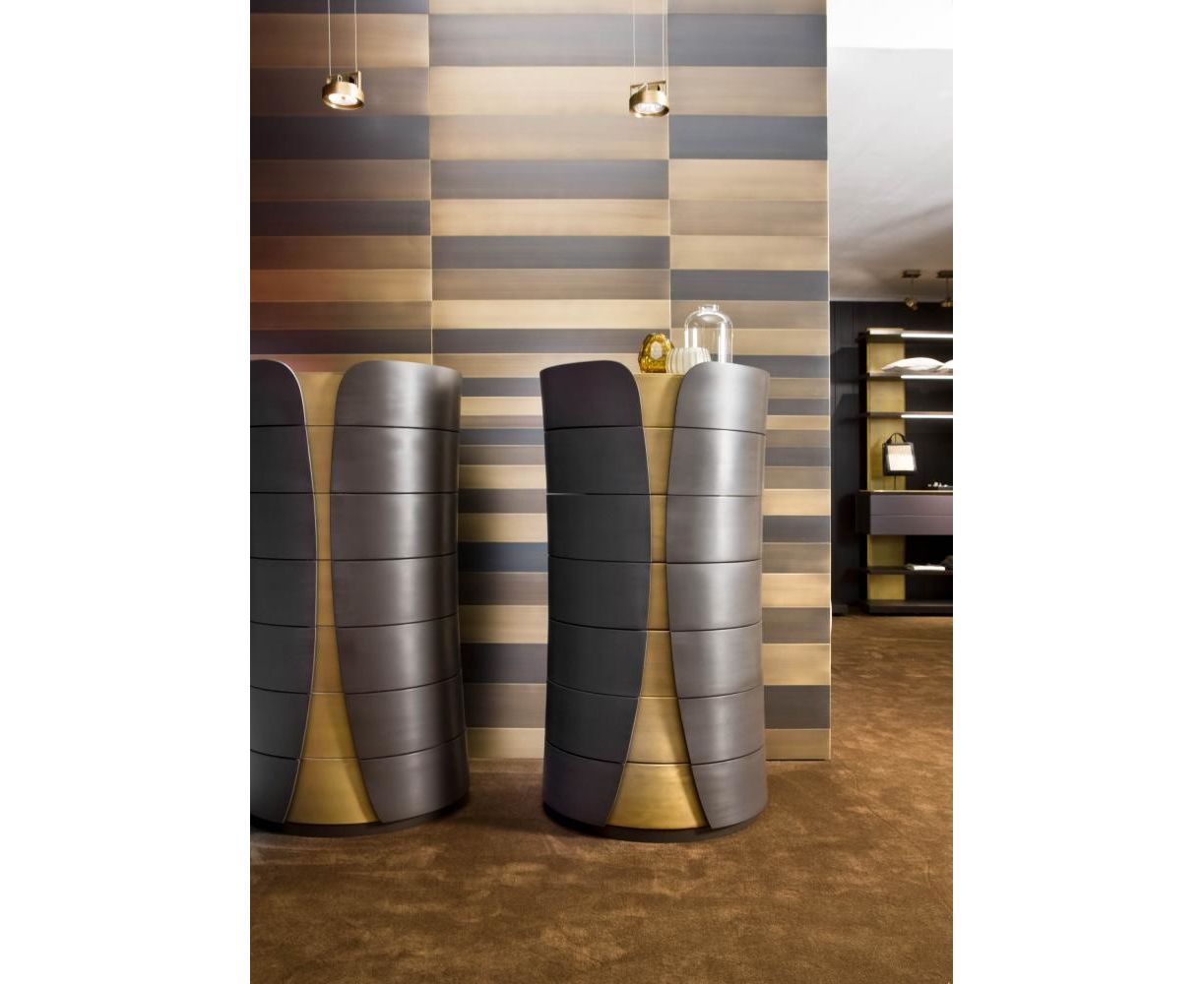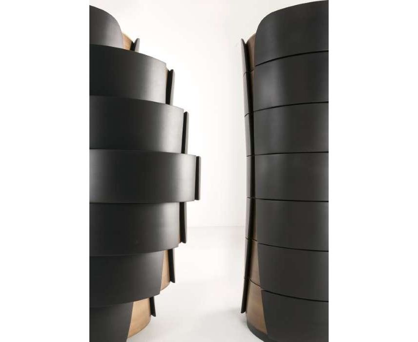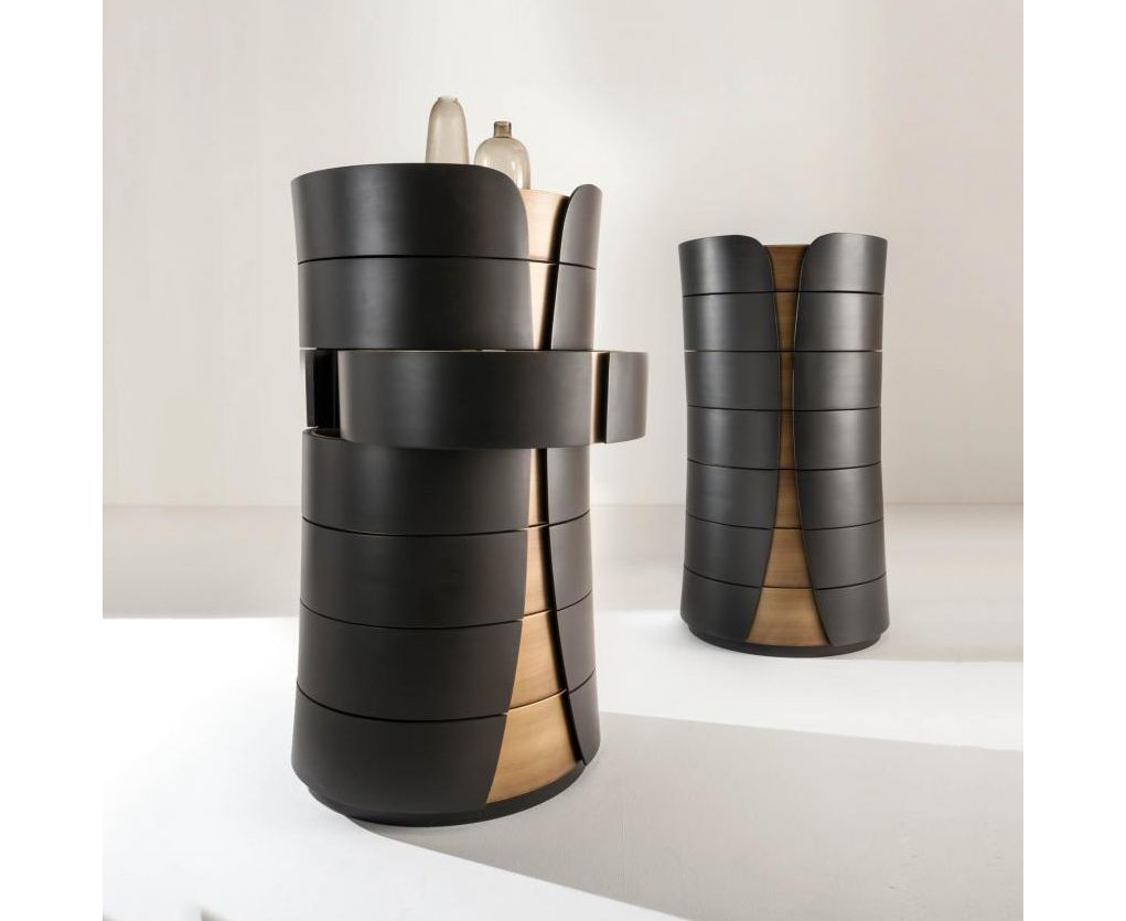 Высокий комод изящного и элегантного очертания с шестью ящиками. Архитектурное сооружение круглой формы в миниатюре, заключающее в себе верхнюю панель и шесть выдвижных ящиков. «Hug» – это современный высокий комод с выдвижными ящиками, который дарит шарм окружающему его пространству. Предлагается широкий выбор отделки и обычной и специальной лакировки, создающих уникальные визуальные эффекты и подчеркивающие привлекательный дизайн. Он может комбинироваться со столиками из этой же коллекции и с элегантностью размещаться в любом интерьере.
