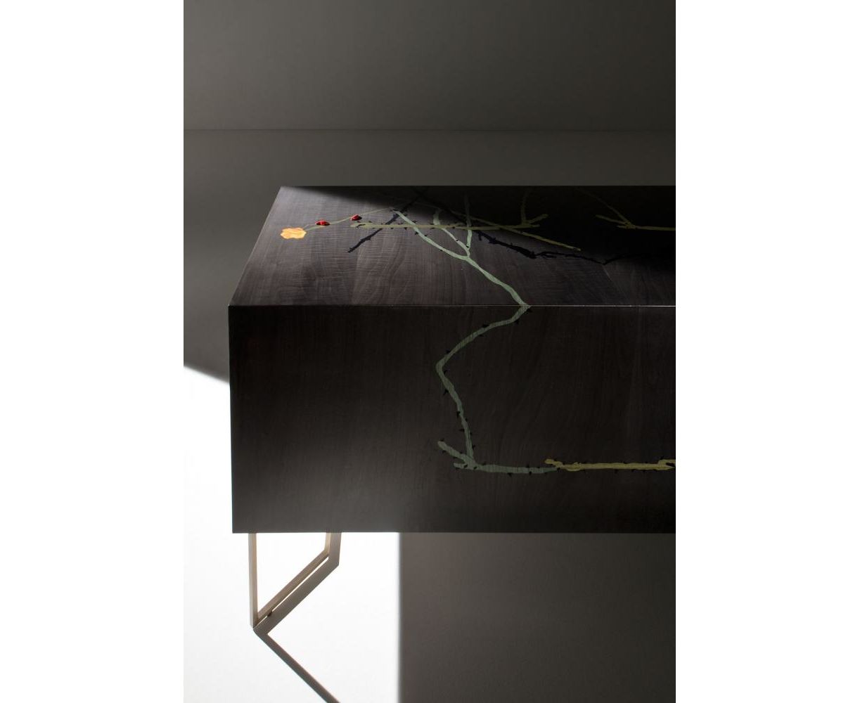 Inverno – это комод ограниченного выпуска, с инкрустацией, на ножках из брашированной латуни. Дизайн комода Inverno навеян образом розового сада, окружающего его с пяти сторон. Рисунок – это результат творчества дизайнеров, который трансформирует этот комод в художественное изделие пронумерованной серии, предназначенное для ищущих уникальные предметы мебели клиентов.