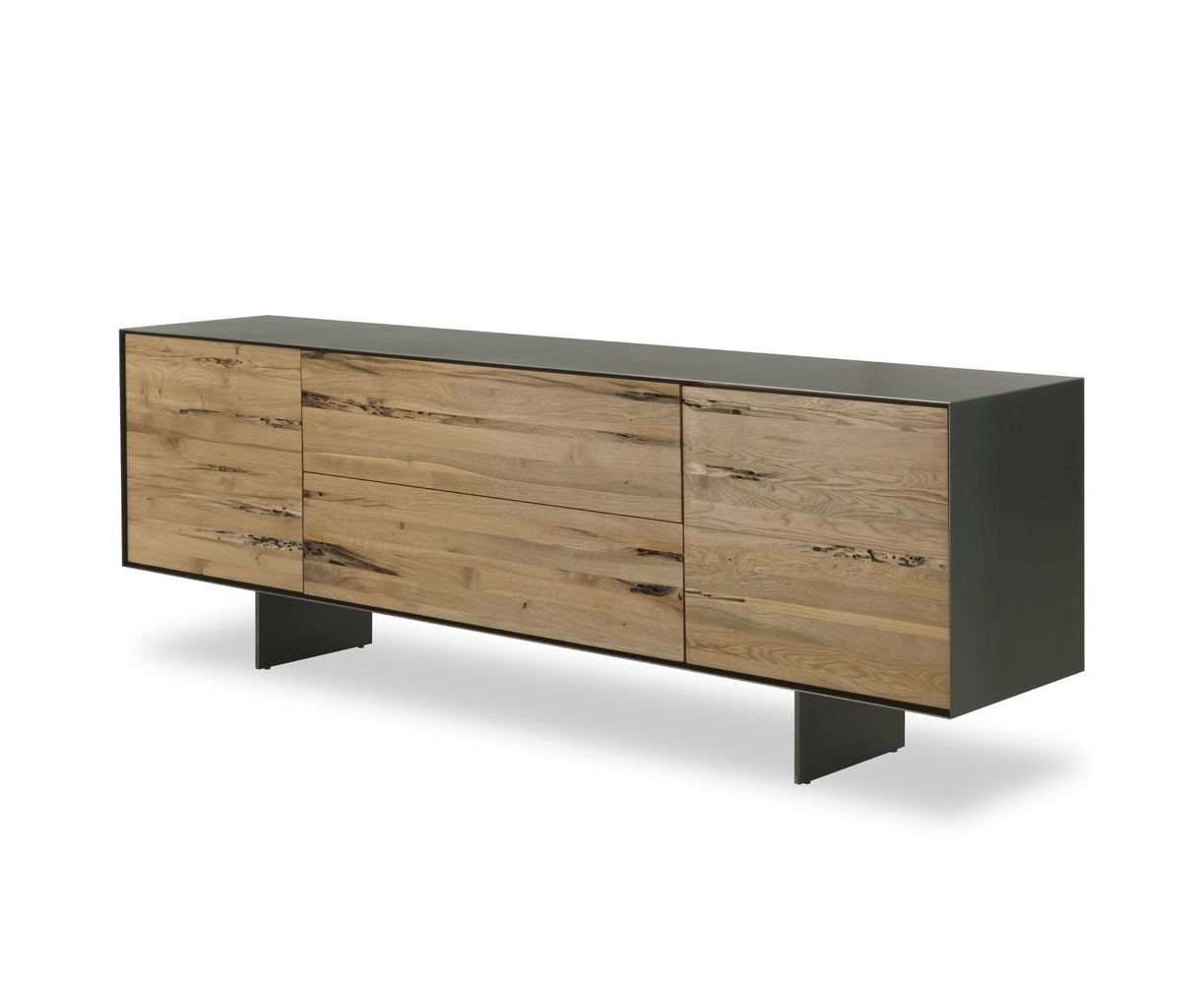 Комод из лиственных пород и фанеры, окруженный железной или деревянной рамой. Асимметричные линии для дверей и ящиков с распашными дверцами или ящиками, собранными с помощью шип-шарнирного соединения и системой выталкивания. Две тонкие железные ножки поднимают его с земли.