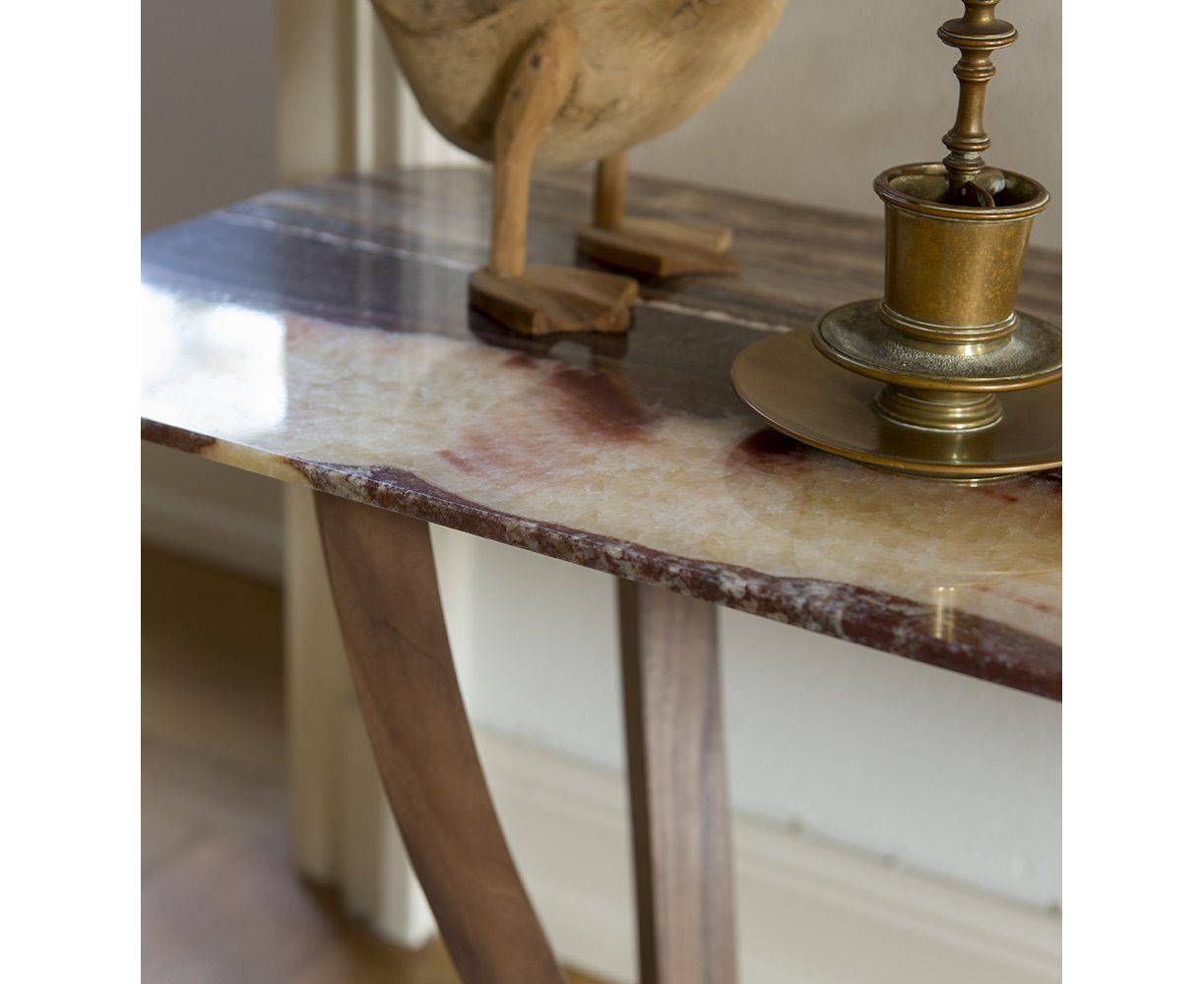 Небольшие столы и консоли разных размеров с металлическим основанием и мраморной / каменной столешницей. Варианты отделки металлического основания: медь, бронза, коричневый. Варианты мрамора и камня: мрамор MAGIC BROWN, мрамор CALACATTA WHITE, мрамор MARQUINA BLACK, мрамор DAINO REALE, мрамор EMPERADOR BROWN, ONICE ROSSO и TRAVERTINO ROSSO PERSIA.