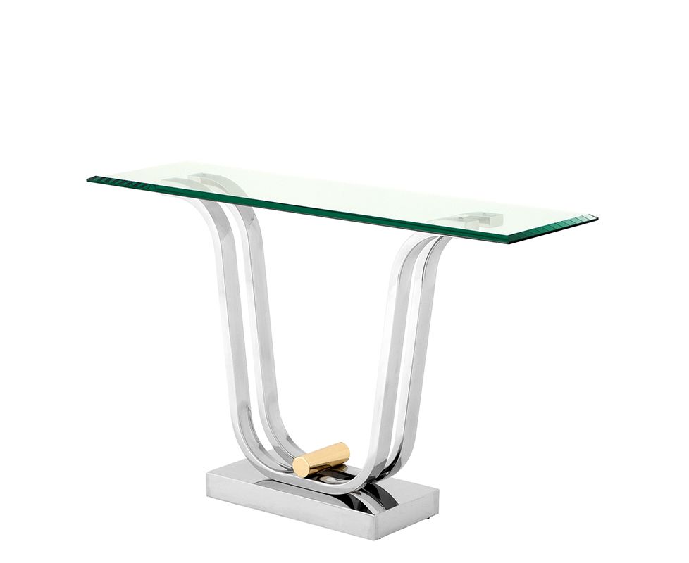 В данной консоли можно проследить смешение нескольких стилей: современного (использование металла и стекла), классического (изящность форм) и минимализма. Очень легкая для восприятия модель, не будет загромождать пространство, а лишь функционально дополнит его.