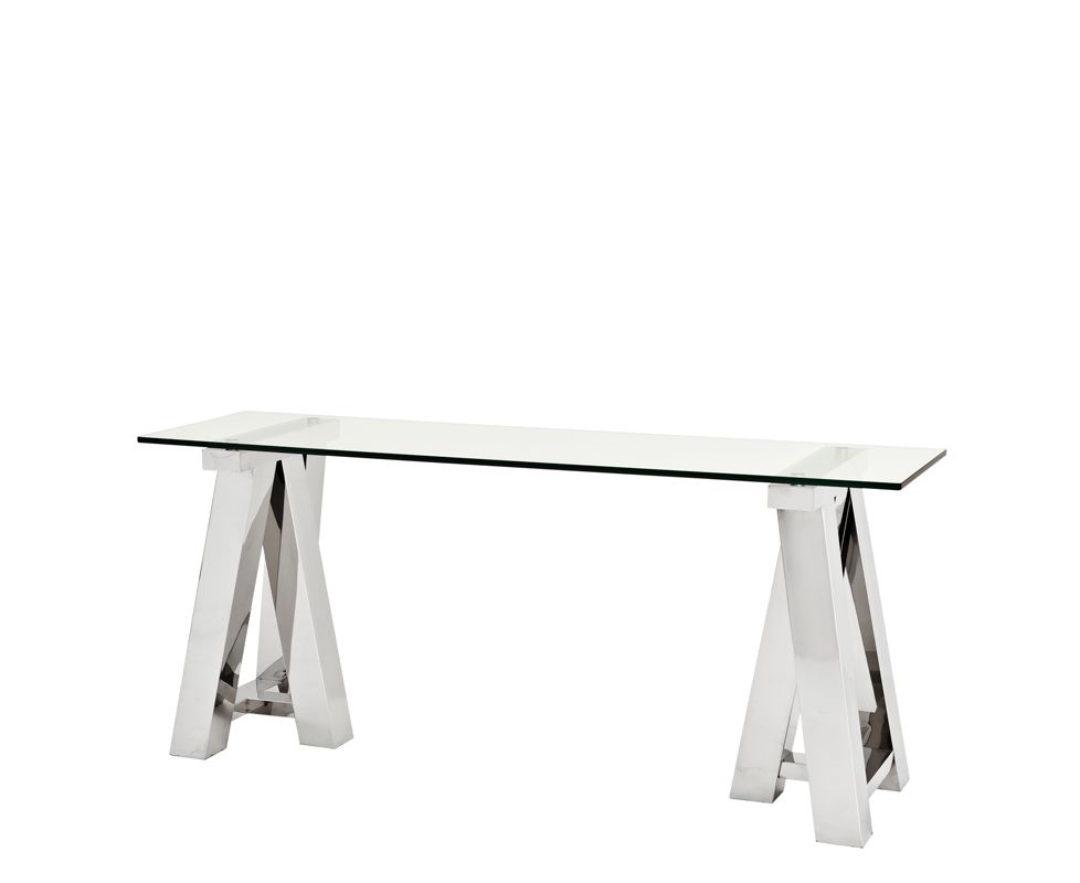 Консоль Marathon сделана из стекла и металла. Массивные ножки отлично сбалансированы прозрачной стеклянной столешницей, которая придает всей конструкции легкость и воздушность.