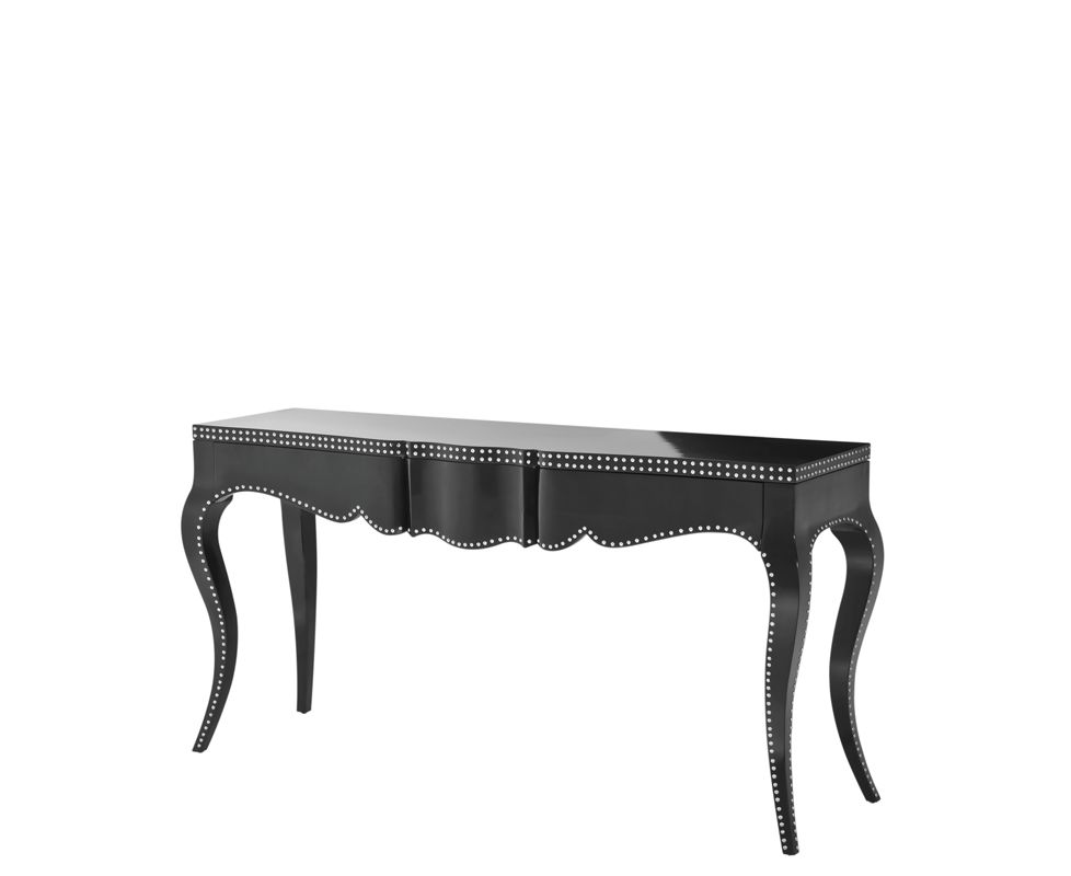 Классическая консоль Margaret. Гладкие плавные формы. Изящные тонкие ножки. Все без излишеств, строгий дизайн разбавляют лишь аккуратные декоративные мебельные гвоздики, подчеркивающие форму.