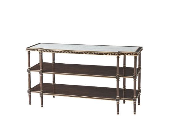 Алекса Хэмптон приносит новую жизнь классическому консольному столу с удивительным вниманием к деталям. Мраморная столешница Bianco Carrara выполнена в обрамлении из красного дерева с греческим декором. Форма повторяется в нижних ярусах. Восемь перевернутых ног с позолоченным кольцом соединяют все вместе. Красиво!