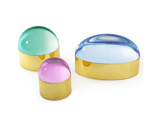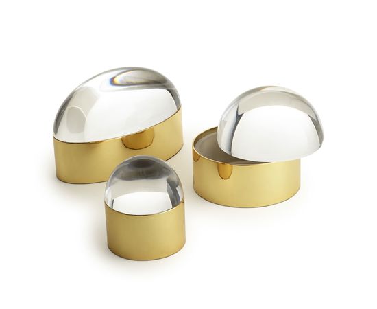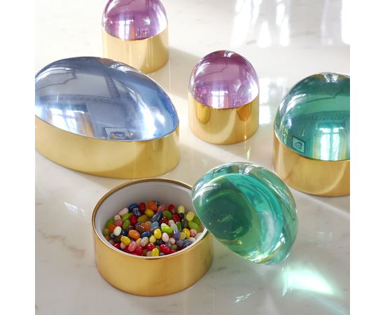 Globo Boxes - интригующее дополнение к любой столешнице, туалетной комнате или коктейльному столу. Полированная латунная основа с подкладкой из бирюзового бархата дополняет акриловую крышку в форме драгоценного камня.