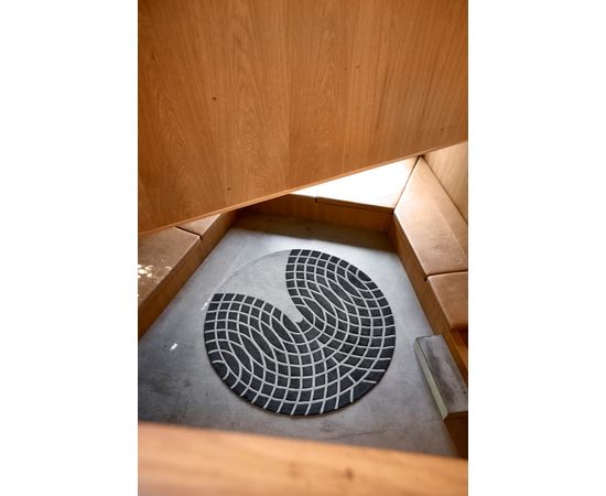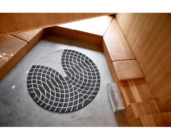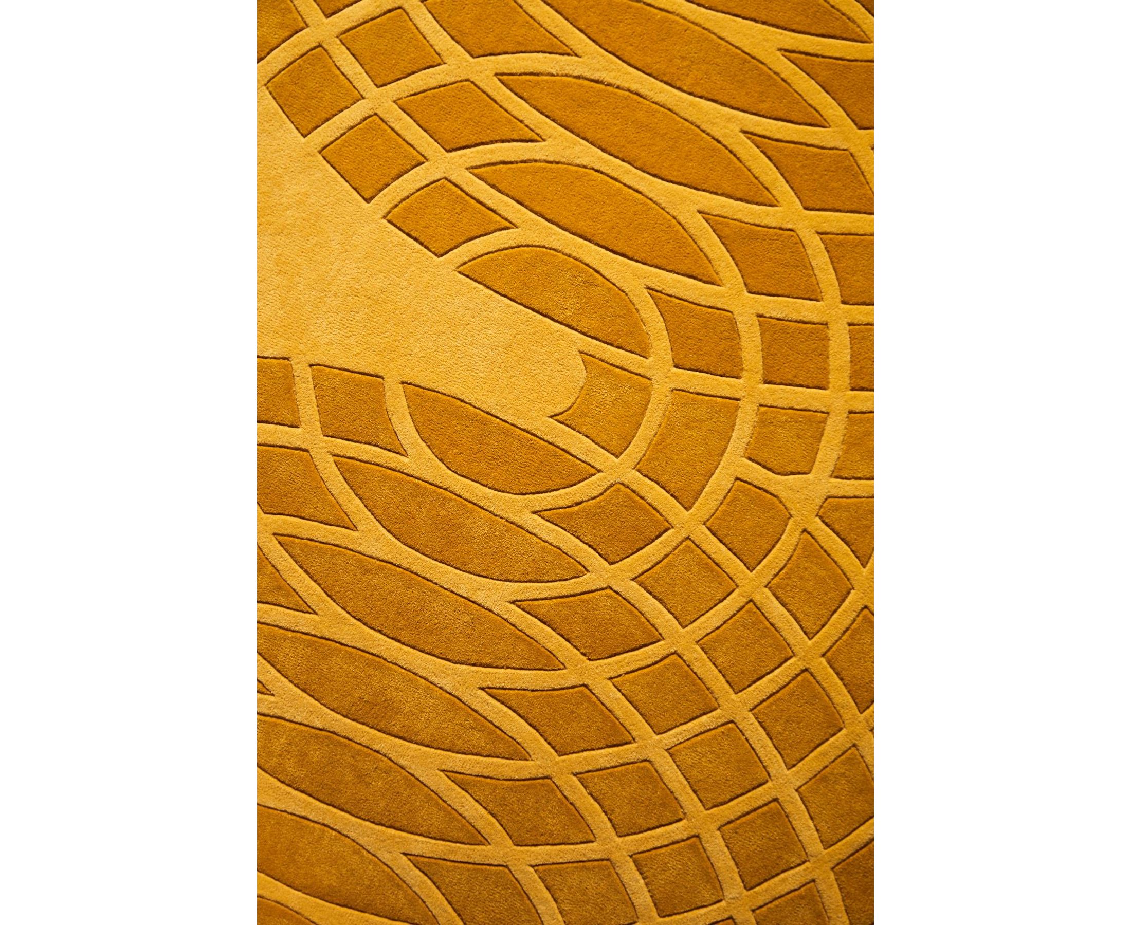 Двухцветный ковер с геометрическим рисунком круга. Доступный в сером, бежевом и желтом цвете.