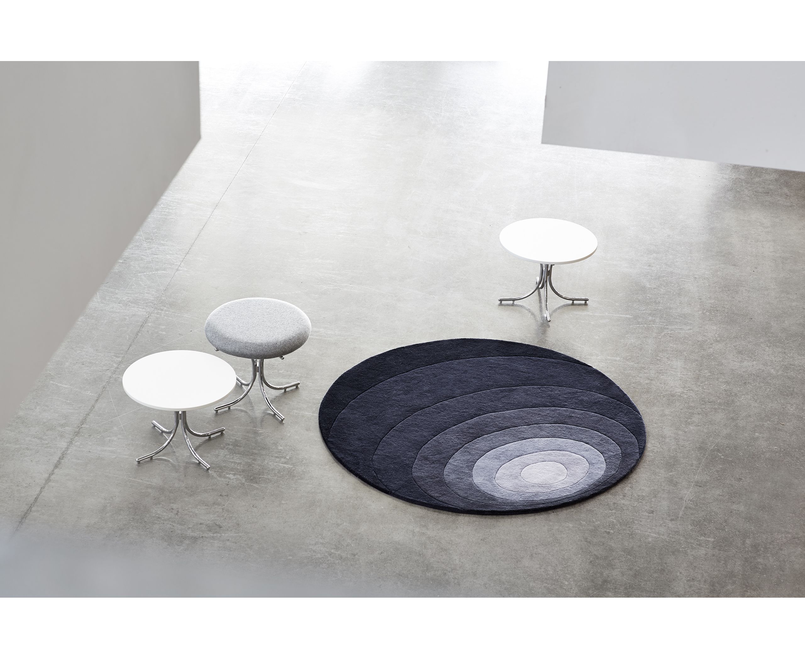 Восьмицветовой ковер с органическим рисунком круга. Доступный в сером, темно-зеленом и темно-желтом цвете.