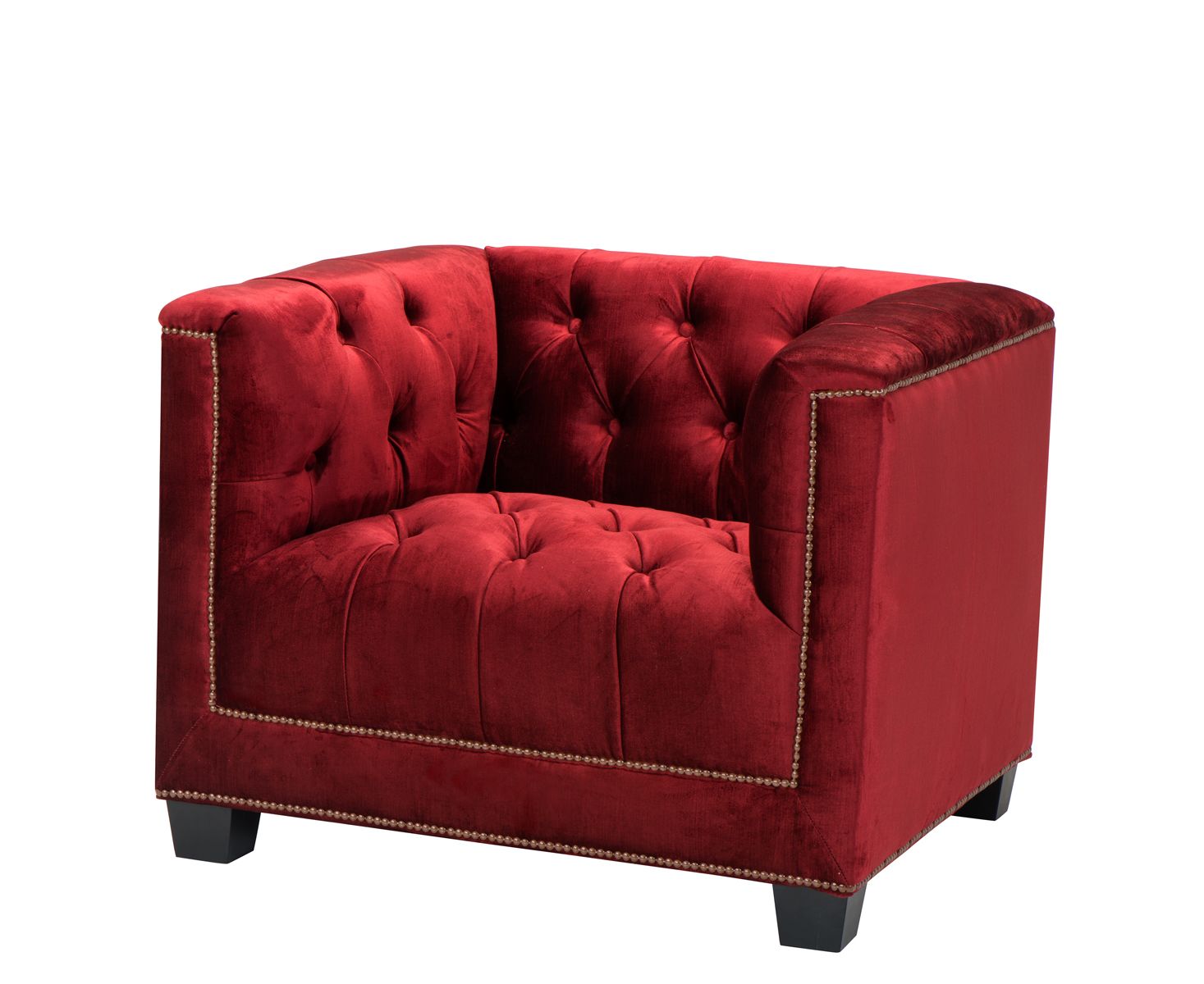 Мягкое классическое кресло для гостиной или кабинета. Строгий дизайн без лишних деталей. Прямая мягкая спинка переходит в такие же подлокотники. Модель декорирована стежкой капитоне и мебельными гвоздиками. Короткие толстые ножки. Модель радует изобилием обивок и цветов.